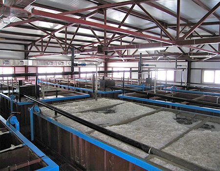 На очистных сооружениях в зонах с минимальным содержанием кислорода (денитрификаторах) возможны различные варианты перемешивания в зависимости от геометрии самих зон и производительности станций. В небольших и средних станциях очистки применяют системы перемешивания с крупнопузырчатой аэрацией, т.к. она минимально увеличивает концентрацию кислорода и оптимальна по экономическим затратам.
